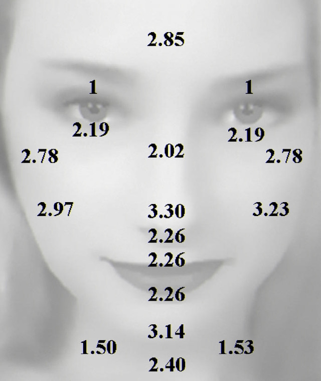 На зображенні наведено індекс товщини шкіри. Цей показник не в міліметрах (мм). Натомість індекс показує її товщина на різних ділянках обличчя, по відношенню до товщини століття, як самого тонкого ділянки шкіри (близько 0,5 мм). Для розрахунку індексу, їх товщина прийнята 1.